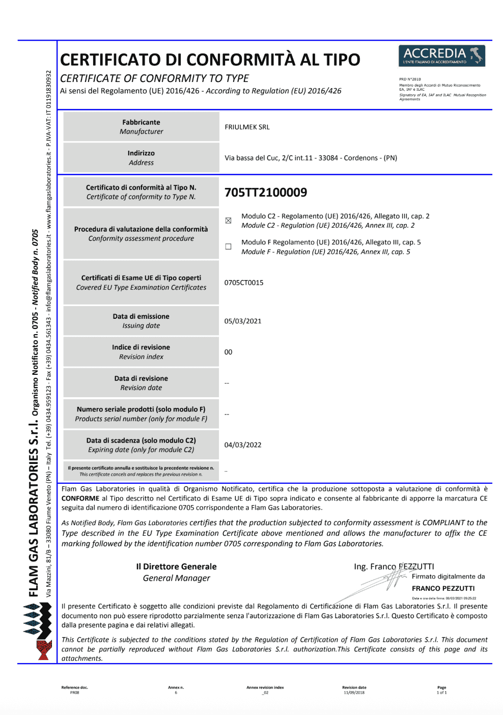 Questo significa che facendo seguito alle prove di sicurezza eseguite a campione e al controllo annuale da parte dell’ organo notificato, il prodotto è coperto dalla massima garanzia di qualità e sicurezza al momento della commercializzazione.